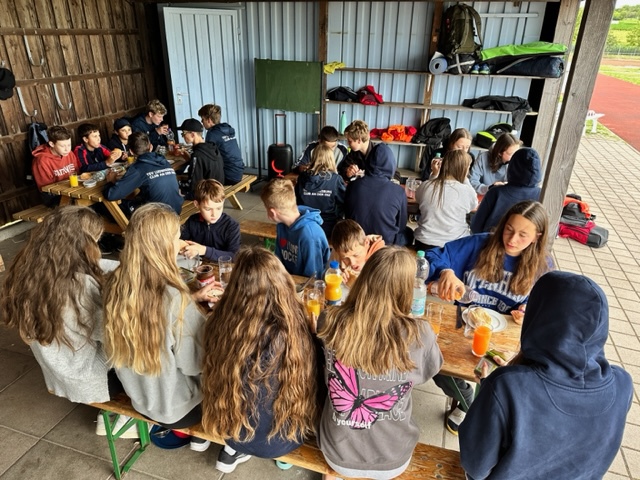 Wer möchte, kann auf der Platzanlage zelten. Bringt daher bitte eine Isomatte und einen Schlafsack sowie ein Zelt mit (wer keins hat, bespricht sich am besten mit seinen Teamkollegen). Kinder unter 10 Jahren übernachten bitte in Begleitung ihrer Eltern. Für 4,50 EUR kann ein Frühstück für Donnerstag gebucht werden.